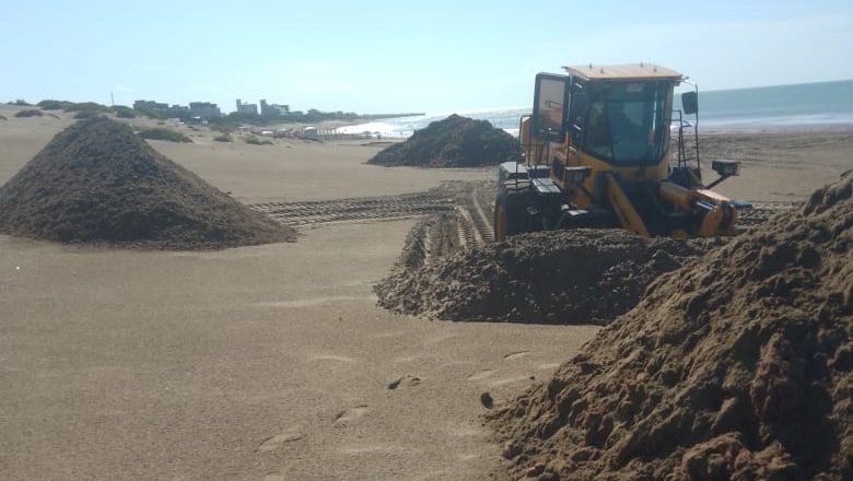 Se realiza un operativo para retirar las algas marinas en la playa de Quequén