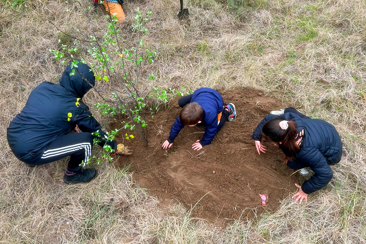 Jornada de plantación en el parque junto a estudiantes del Colegio Danés