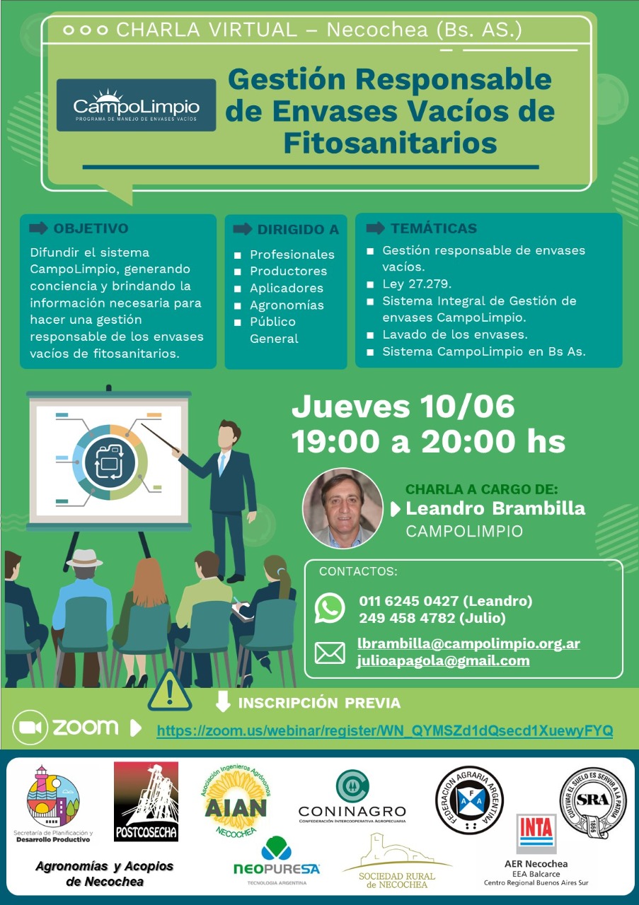En conjunto con otras entidades y empresas, la Secretaría de Planificación y Desarrollo Productivo de la Municipalidad de Necochea invita a participar de la jornada virtual “Gestión Responsable de Envases Vacíos de Fitosanitarios”, que tendrá desarrollo este jueves 19, en el horario de 19 a 20.