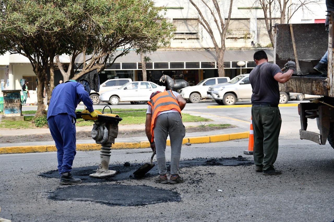 La Dirección de Infraestructura, a cargo de Marcelo Gómez, continúa con el plan de bacheo en el distrito, haciendo hincapié estos días en el microcentro con material rapibach (asfalto en frío), mezcla que sirve para tapar pequeños pozos más rápidamente.