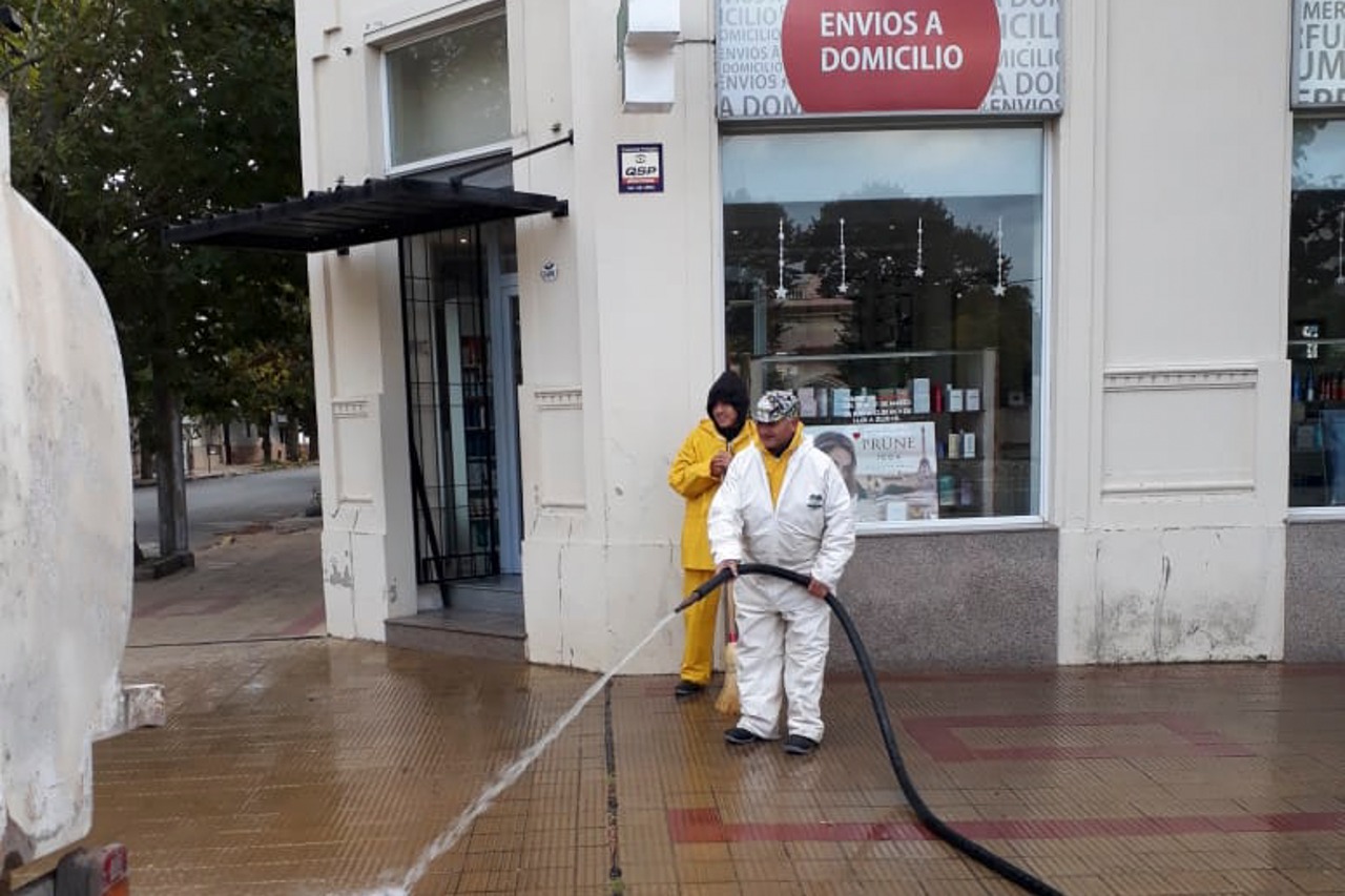 Para no dejar ningún foco de contagio posible y para achicar a lo máximo el margen, el municipio continúa con el plan de desinfección en diferentes arterias de la ciudad donde hay mayor fluidez de vecinos, dando prioridad a la entrada de comercios sobretodo.