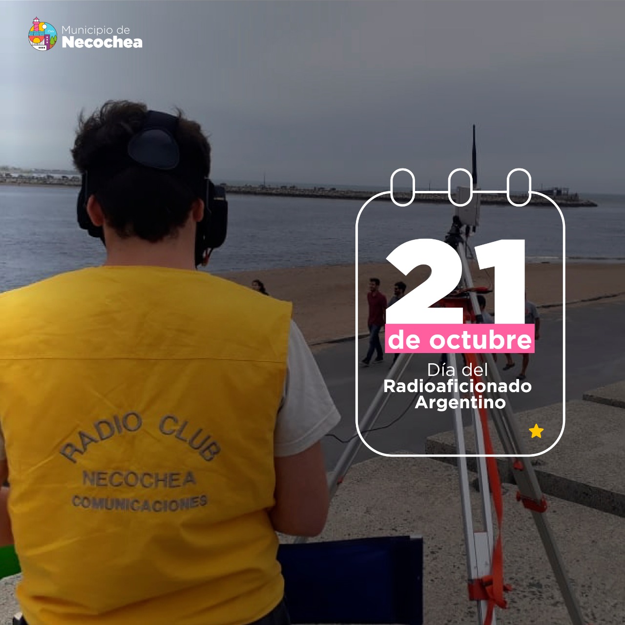 La Municipalidad de Necochea tiene el agrado de saludar a los radioaficionados de todo el territorio argentino en su día, resaltando el compromiso incondicional para prestar servicio en situaciones de emergencias, catástrofes, u otras necesidades donde las comunicaciones tradicionales cesan o no se cuenta con ellas.