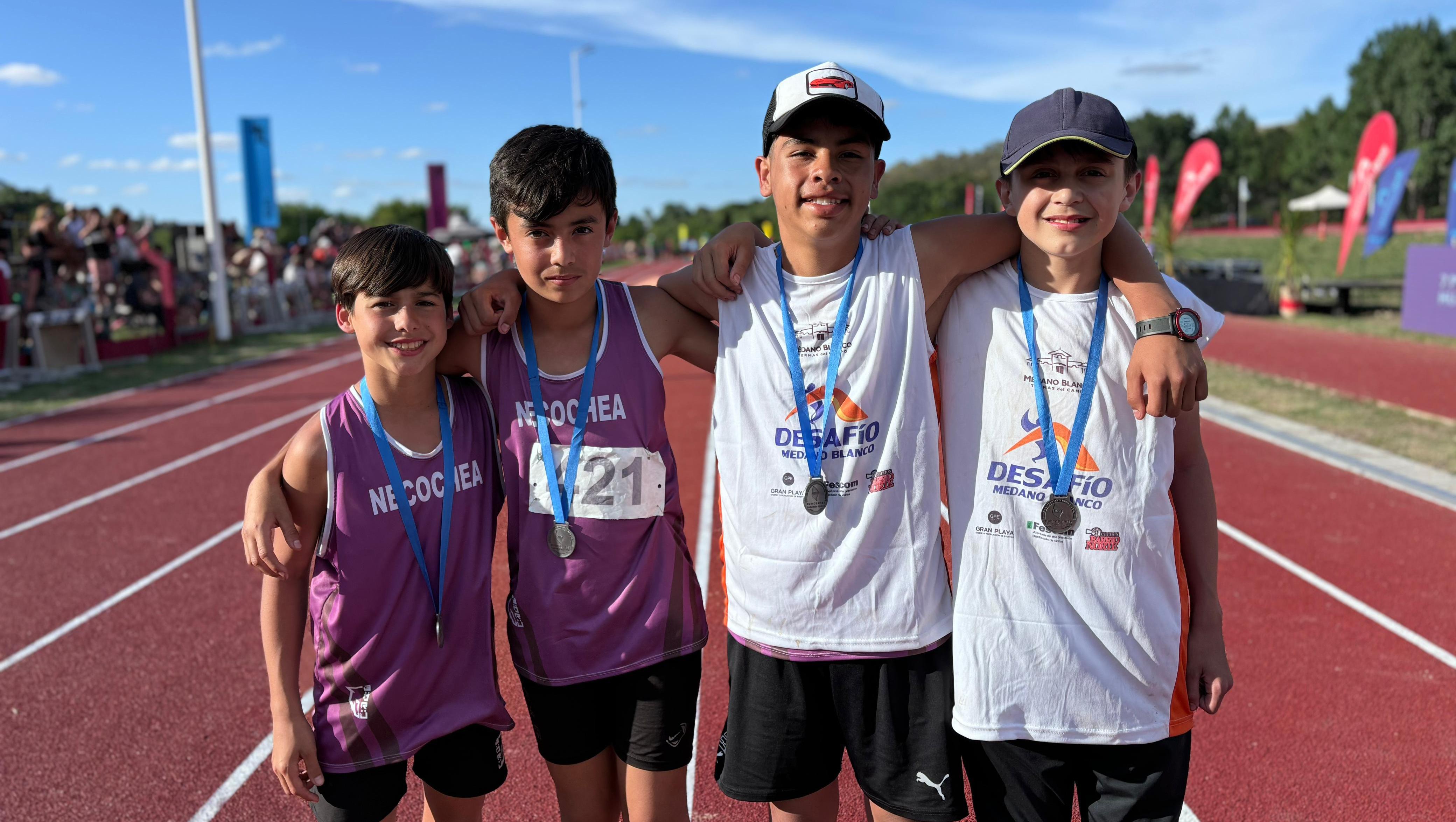 En tanto en la categoría formativa más chica del atletismo, entre las damas en la pista 4 x 50 integrada por Souto, Castellano, Zunda y Pérez Pelayo fueron medalla de bronce.