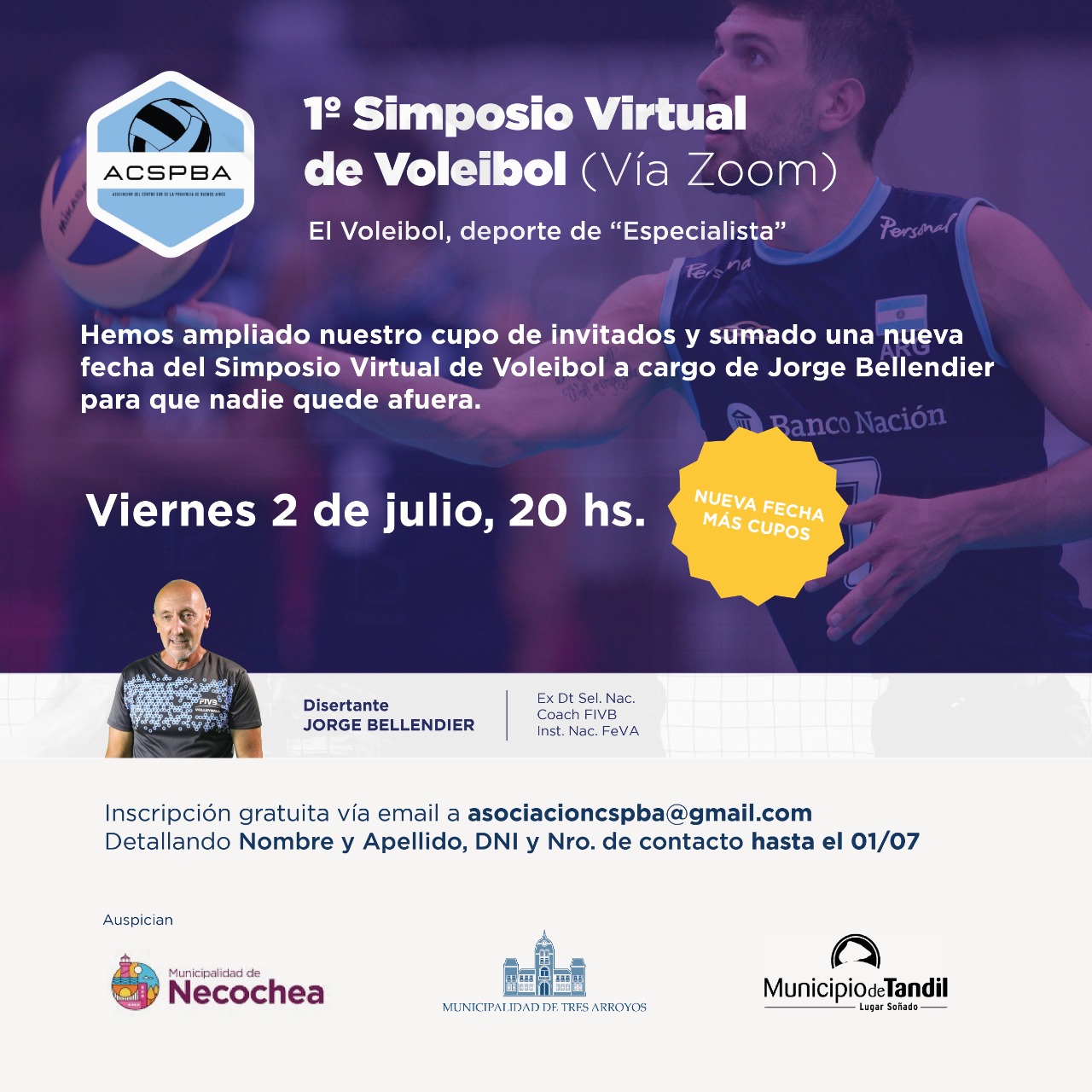 En el marco de un proyecto regional que tiene como objetivo ampliar la actividad del vóley, la Dirección de Deportes de la comuna, a cargo de Adrián Buño, anuncia para los próximos dos viernes un simposio virtual a cargo del reconocido entrenador Jorge Bellendier, quien llevara a la consagración a Luz y Fuerza de Necochea en la Liga Argentina de Clubes de 1998.