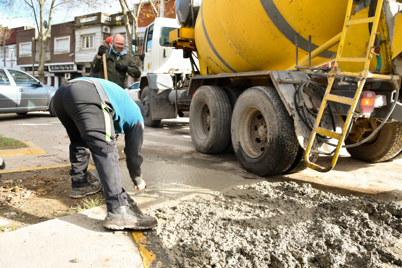 Puntualmente sobre los trabajos que se realizaban esta mañana en el microcentro, el funcionario señaló que se trata del “medio badén que faltaba”, para lo que, previamente, “se tuvo que hacer rotura de losa, suelo cemento y, ahora, se está llenando con hormigón”.