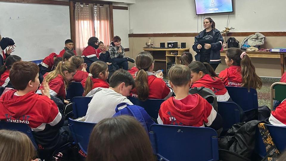 La charla fue brindada por la técnica en ambiente de la Dirección de Gestión Ambiental, Canela Curin, y estuvo dirigida a estudiantes de 6to grado, quienes demostraron un gran compromiso con el cuidado de nuestra ciudad y con la realización de su proyecto de separación de residuos dentro de su escuela. Durante el encuentro se abordaron contenidos fundamentales vinculados al ciclo de los residuos, la importancia de reducir, reutilizar y reciclar, el rol de los municipios en la gestión integral de los residuos, y la función del compostaje como estrategia de valorización de los residuos orgánicos.