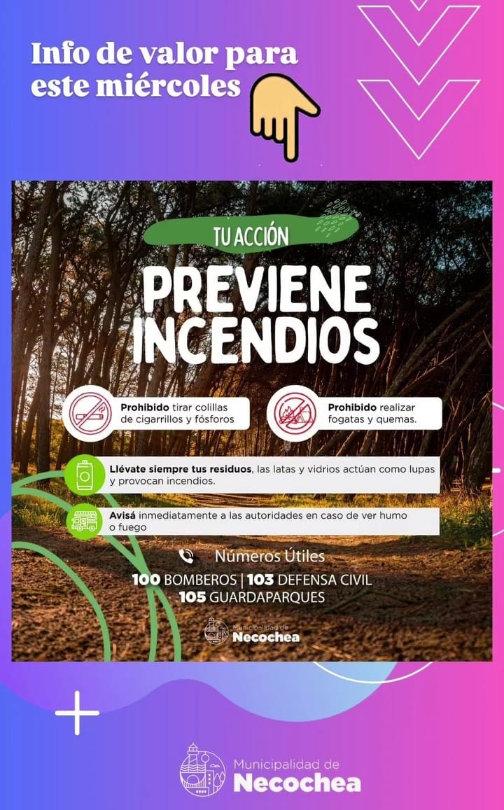 Ante las altas temperaturas, desde el municipio se recuerdan las medidas principales para evitar incendios, los lugares correctos para prender fuego y las líneas de emergencia para comunicarse enseguida.