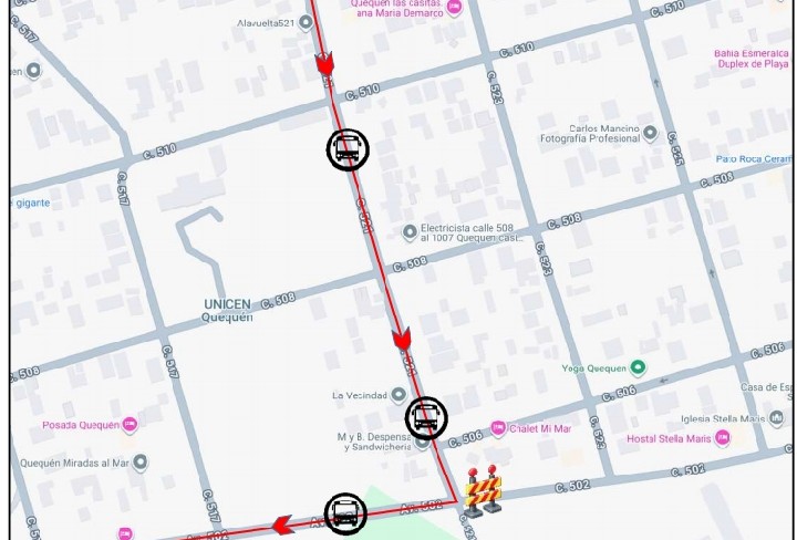 Por calle 521 hasta Av. 502 (Av. Juan de Garay), por Av. 502 hasta Av. Almte. Brown retomando su recorrido habitual
