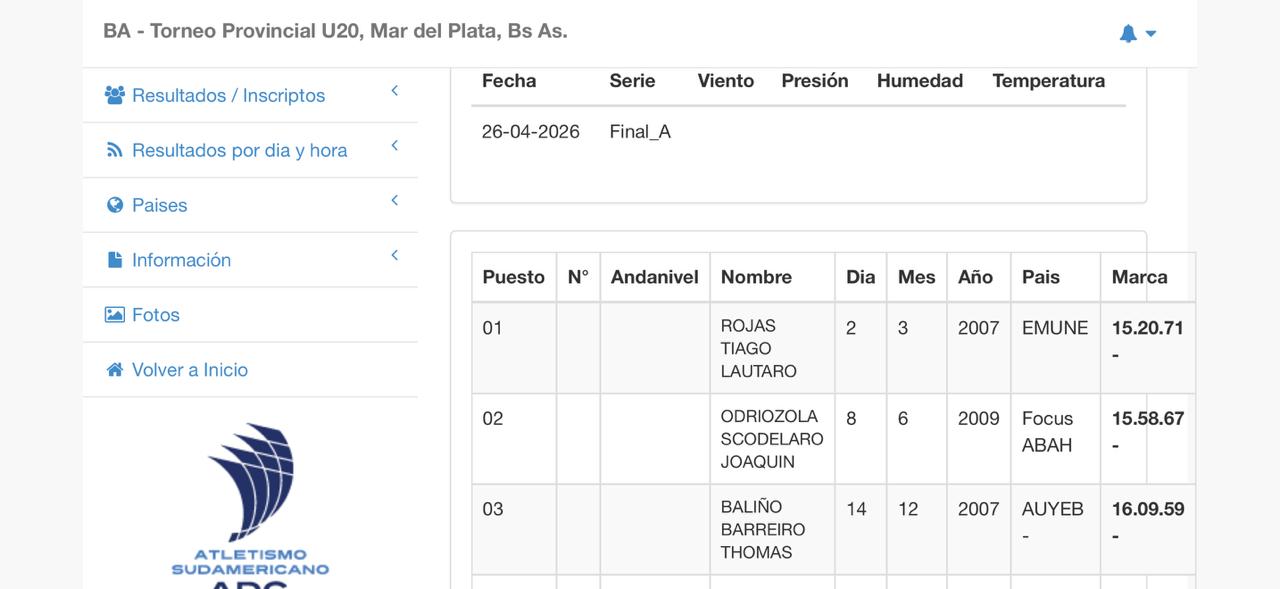 La Escuela Municipal de Atletismo ha vuelto a brillar en lo más alto de los podios, ya que este fin de semana Tiago Rojas reconfirmó el gran 2026 que viene teniendo al consagrarse campeón del Provincial U20 en 5000 metros llanos y subcampeón en 1500 metros.