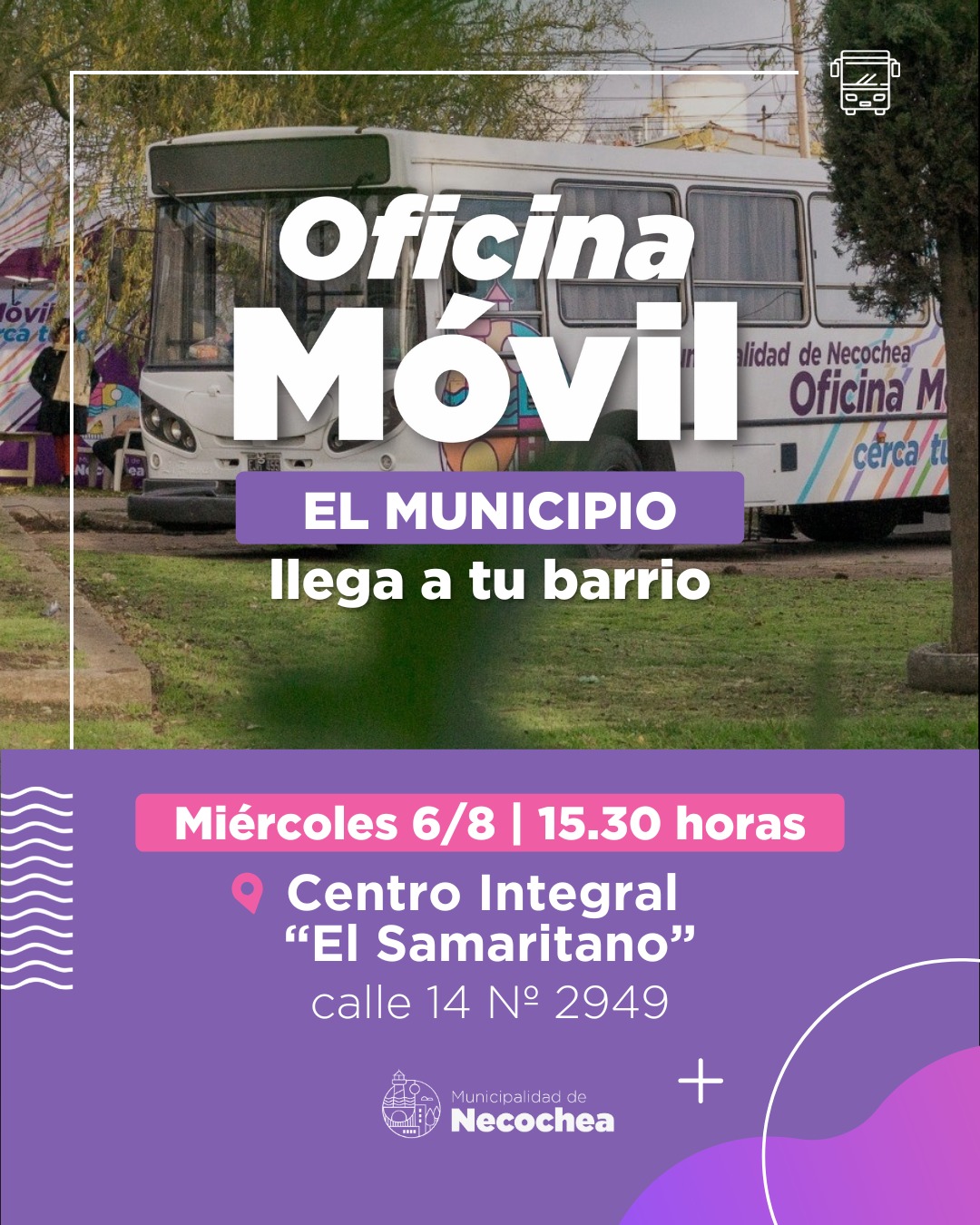 La gestión del intendente Arturo Rojas continúa acercando el Estado a cada rincón del distrito, y esta semana lo hace con una nueva edición de la Oficina Móvil, que se instalará este miércoles 6 de agosto a partir de las 15.30 en el barrio Puerto, precisamente en el centro comunitario El Samaritano (calle 14 N° 2949, entre 59 y 61). Con servicios esenciales, atención directa y una impronta de escucha activa, el Municipio refuerza su presencia territorial en beneficio de los vecinos y vecinas.