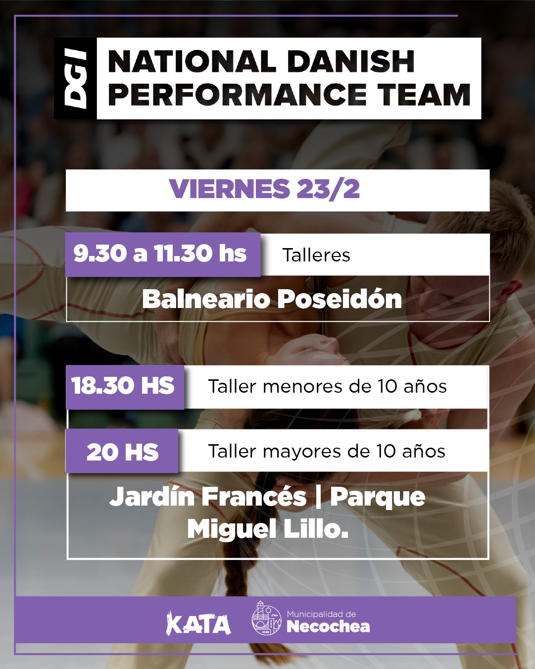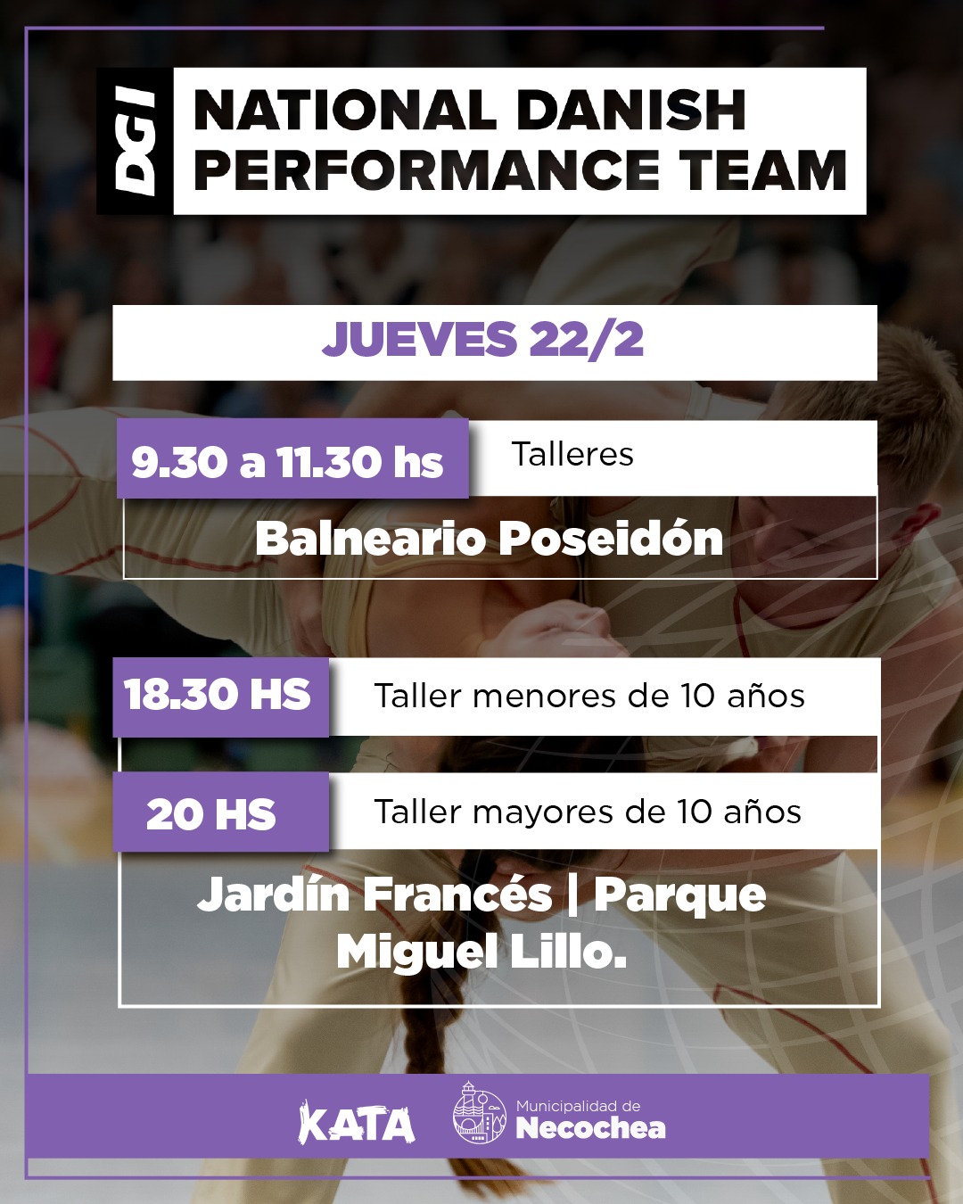 La Dirección de Deportes, a cargo de Guadalupe Hernández y dependiente de la Secretaría de Tusrismo y Desarrollo Productivo, informó sobre el cronograma de actividades gratuitas para toda la comunidad que se llevarán a cabo junto al Equipo Nacional de Gimnasia Danesa, que estará arribando la semana venidera a Necochea.