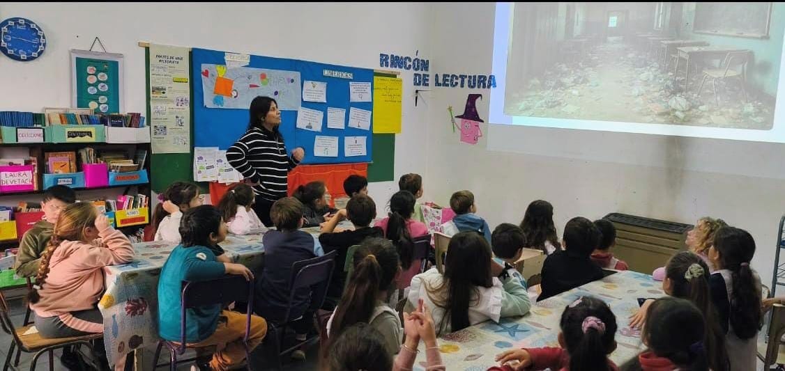 La directora del área, Isabel Génova, fue la encargada de brindar la charla en la institución, donde trabajó junto a los niños de primero, segundo y tercer grado temáticas vinculadas a los Residuos Sólidos Urbanos (RSU), el reciclaje y el compostaje, apuntando a generar conciencia ambiental desde las primeras etapas del desarrollo escolar.