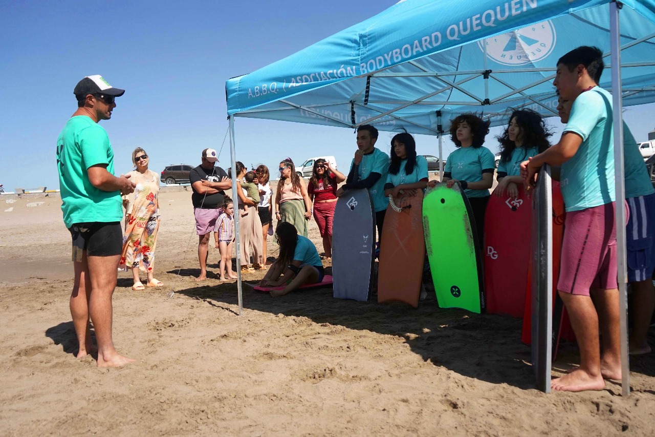 Con el impulso de la Secretaría de Desarrollo Humano y Políticas Sociales, a cargo de Sandra Antenucci, los jóvenes beneficiarios del Proyecto “Aparece cuando nos encontramos” disfrutaron este miércoles de una clínica de body en el sector de la Escollera Norte, junto a la Asociación de Bodyboard de Quequén.