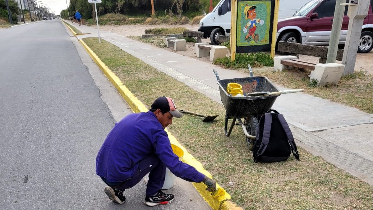 Entre los trabajos realizados se destacan la pintura de cordones, tareas de higiene urbana con corte de pasto que se extendieron hasta la zona de Costa Bonita, riego diurno y nocturno en calles de tierra, y junta de ramas en distintos domicilios.