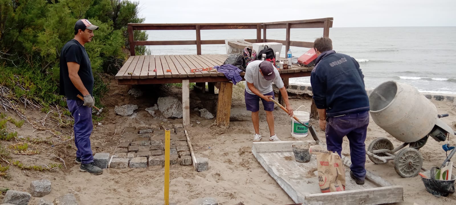 En otro orden de tareas, personal de la Delegación municipal se encuentra abocado a la construcción de una escalera con adoquines en mirador frente a Pinocho.