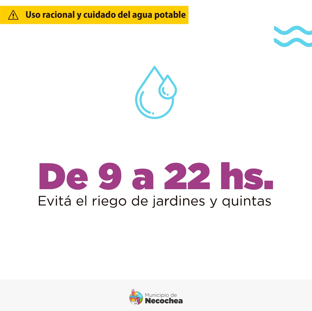 Asimismo, en el horario de 9 a 22 hs., se insta a tratar de evitar riego de jardines y quintas.