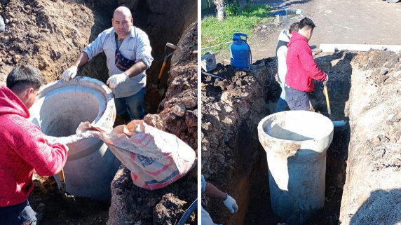 También se llevaron a cabo tareas en la red cloacal, con la reparación de una cámara de registro en la esquina de Calle 68 y Avenida 75, que presentaba deficiencias estructurales. En paralelo, se concretaron nuevas conexiones domiciliarias a la red pública de agua, facilitando el acceso al servicio a más familias.