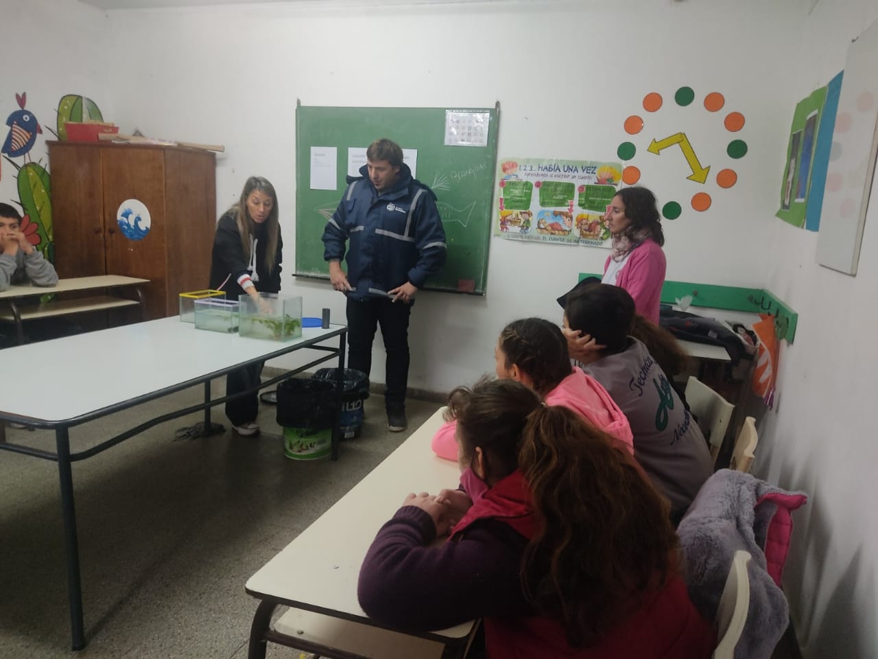 En el marco del programa “Piscicultura te visita”, que lleva a adelante la Dirección de Gestión Ambiental de la comuna, a cargo de Isabel Génova, técnicos de la Estación de Piscicultura visitaron la Escuela Nº 503 de Quequén y brindaron una charla ante alumnos, docentes y directivos.