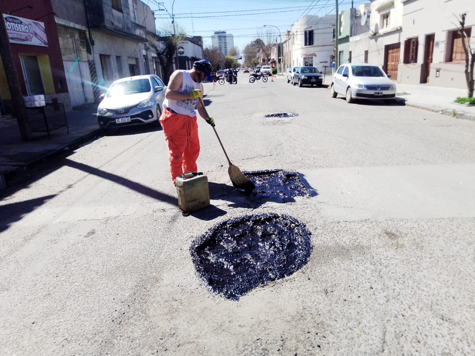 Al plan de bacheo con hormigón esta semana se le dio avance en diversos puntos de Necochea, mientras que se hacen pequeñas reparaciones con rapibach en calle 64 entre 65 y 71.
