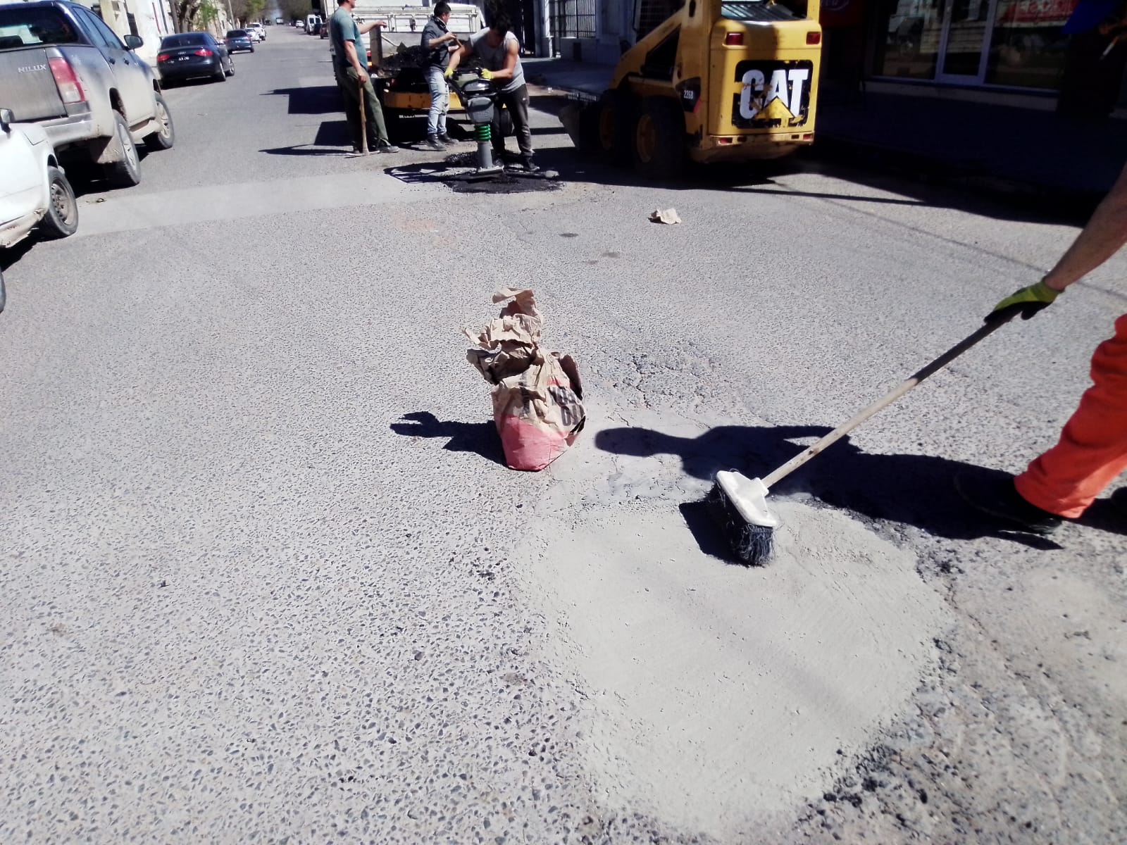 Las cuadrillas de la Dirección de Infraestructura, dependiente de la Secretaría de Planeamiento, Obras y Servicios Públicos, avanzaron con bacheo esta semana a muy buen ritmo en diversos puntos de la ciudad, tanto con reparaciones grandes como las pequeñas, utilizándose en estas últimas el material rapibach.