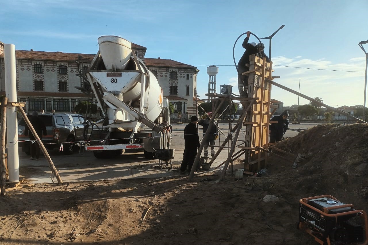 Continuando con las mejoras del frente costero, aun fuera de la temporada estival, la Secretaría de Planeamiento, Obras y Servicios Públicos informó que esta mañana comenzó el proceso de hormigonado de las columnas que darán vida al nuevo pórtico de señalización en la bajada de vehículos 4×4 ubicada en Avenida y calle 71.