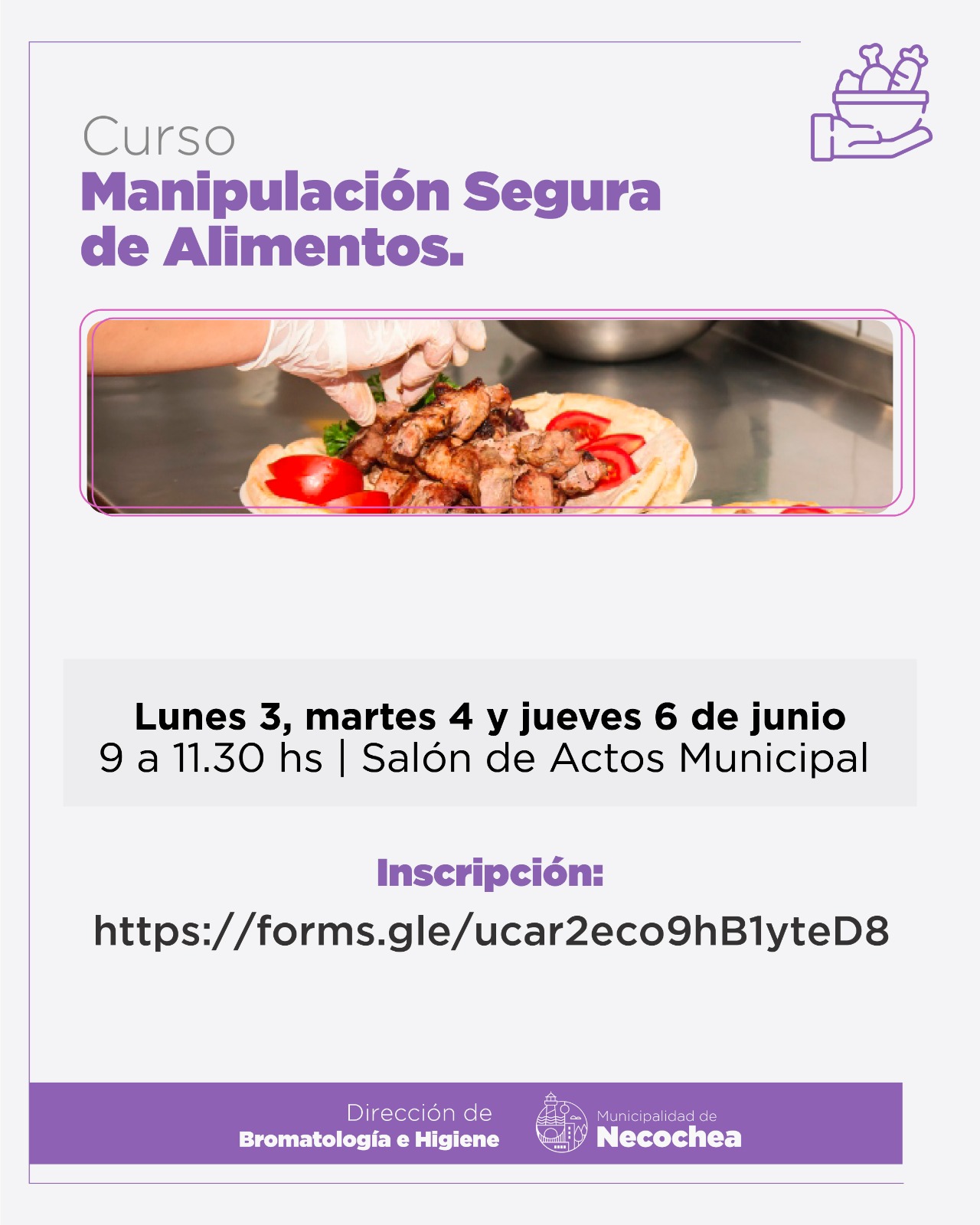 La Dirección de Bromatología e Higiene organiza la segunda edición anual del Curso de Manipulación Segura de Alimentos, que se estará realizando los próximos 3, 4 y 6 de junio, con el objetivo de seguir capacitando a los elaboradores y al público en general sobre esta temática.
