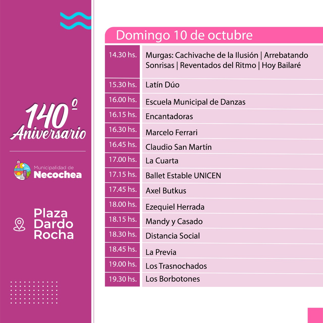 Por el escenario mayor de la Plaza Dardo Rocha pasarán artistas de los más variados géneros musicales y distintos cuerpos de baile, que estarán pisando las tablas desde este mismo viernes y hasta el lunes 11 de octubre. También habrá paseos gastronómicos y de emprendedores, juegos y talleres.