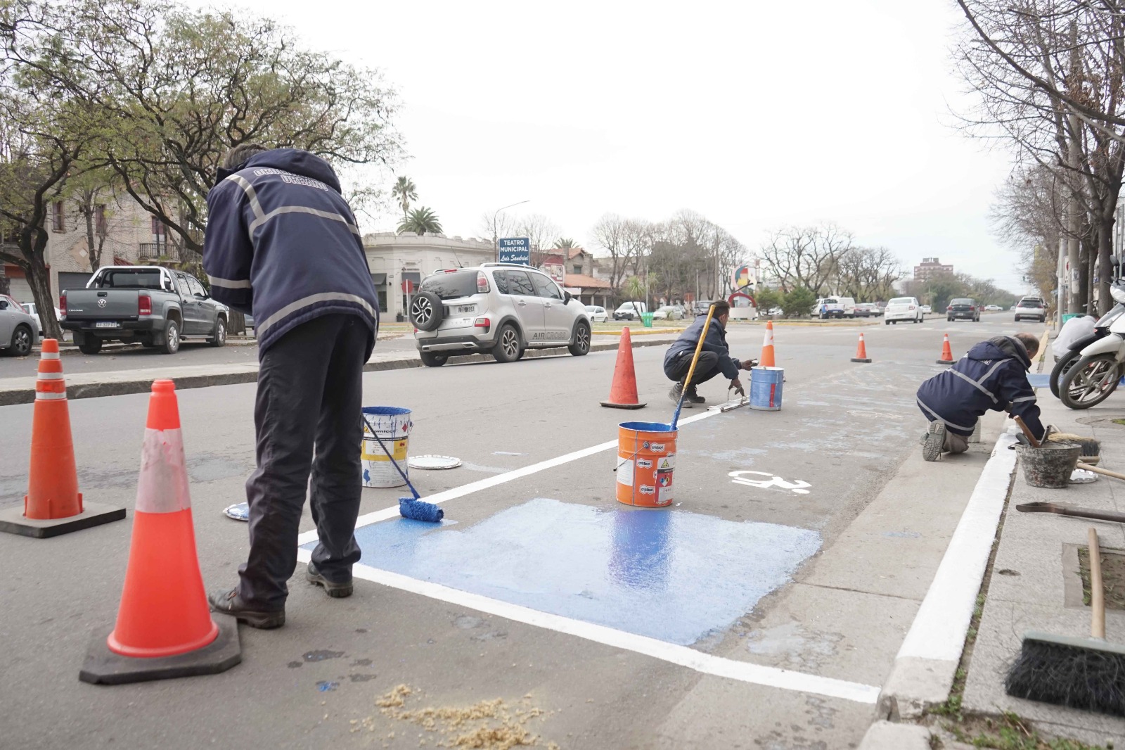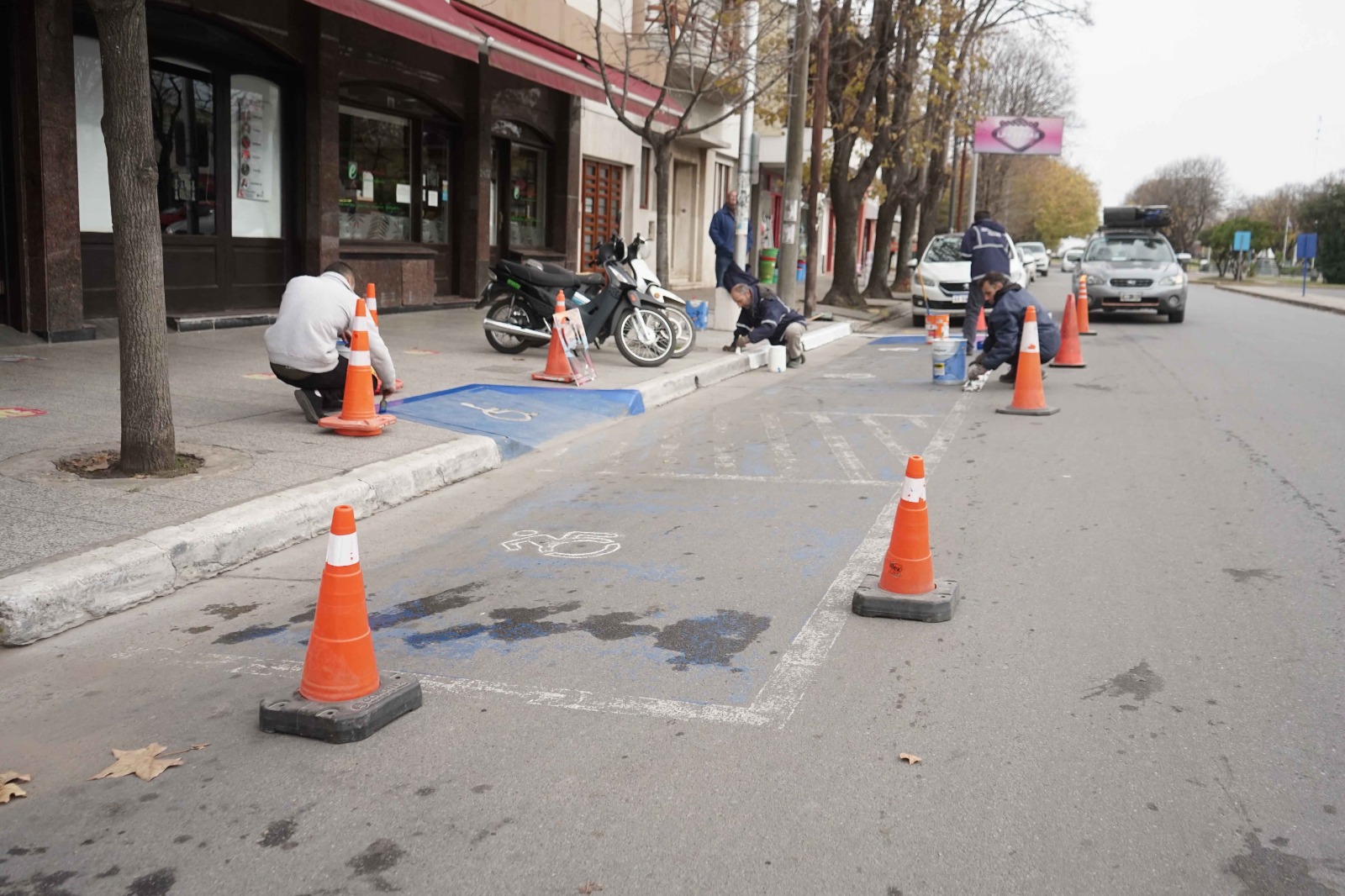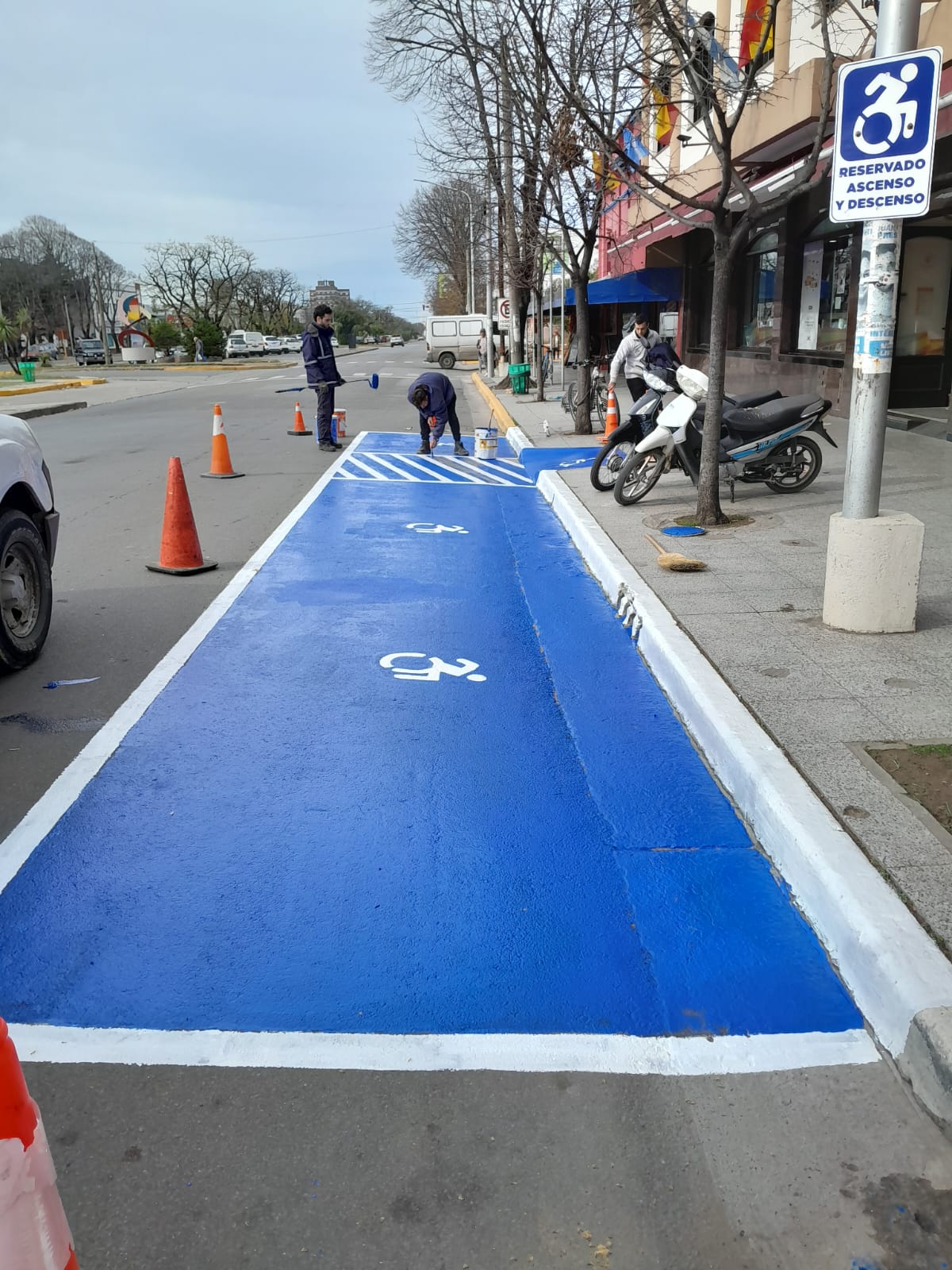 Personal municipal demarcó un espacio e incluyó una rampa para personas con discapacidad en la vereda de la Sociedad Española de Necochea.