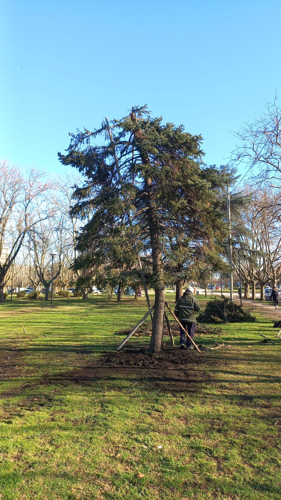 El ejemplar de picea que se decora cada año como arbolito de Navidad fue replantado en base al notable trabajo de las áreas de la Secretaría de Obras Públicas.