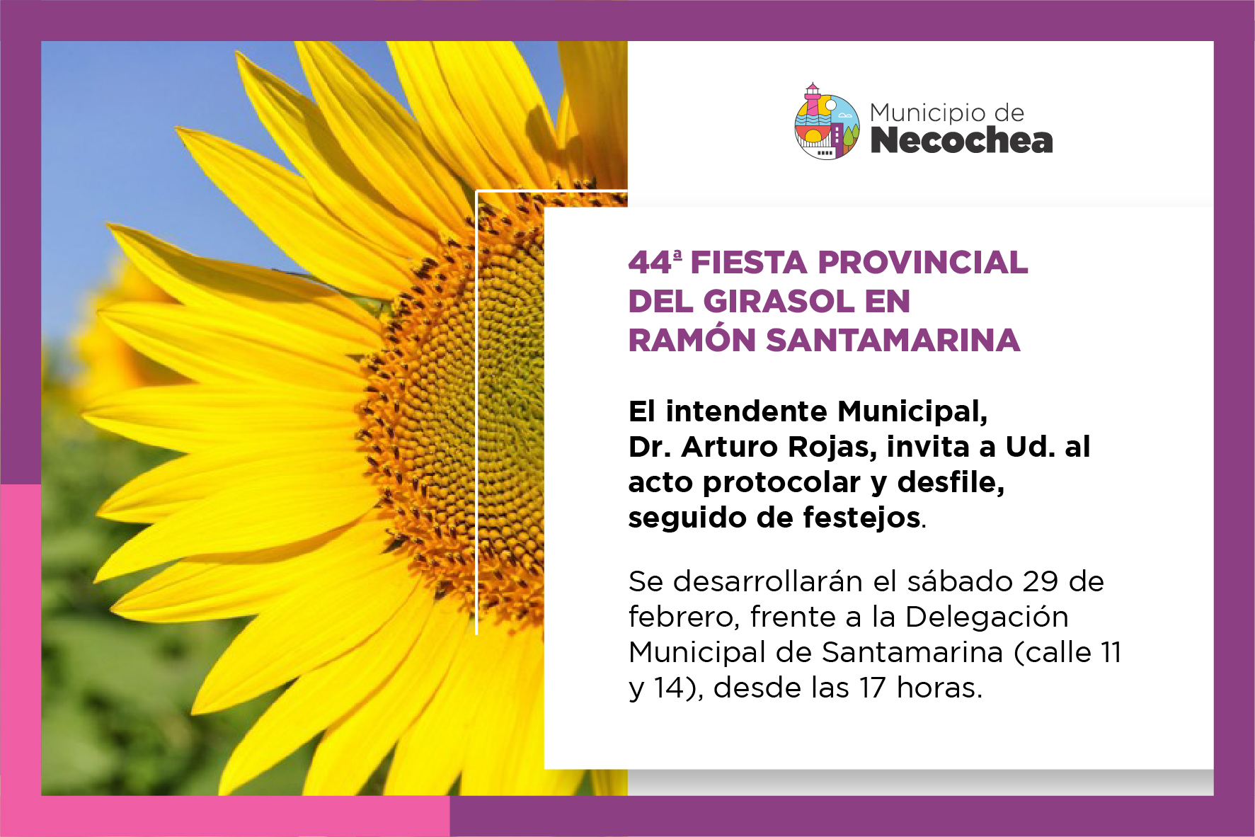 Este sábado 29 se celebrará la 44º edición de la Fiesta Provincial del Girasol en Ramón Santamarina, que tendrá el acto protocolar y desfile institucional frente al edificio de la Delegación Municipal, a partir de las 17.