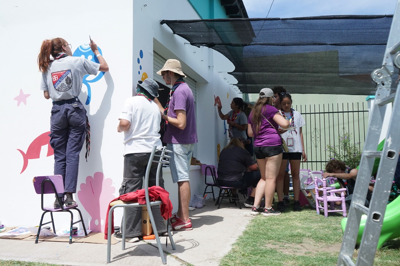 En ese contexto, la labor de los scouts estuvo orientada a acciones de puesta en valor y embellecimiento del establecimiento, como la pintura de un mural en el patio, el acondicionamiento y pintura de sillas y la puesta en condiciones de distintos muebles, con el objetivo de dejar el jardín preparado para el inicio del próximo ciclo lectivo.
