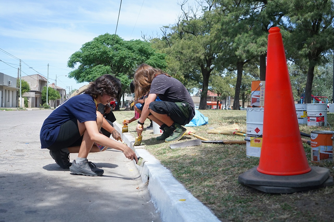 De la misma manera que en la institución del puerto, otro grupo de jóvenes scouts estuvo abocado a trabajos de puesta en valor de espacios públicos, tal como se llevó a cabo en la Plaza Scout de 74 y 75, con pintura, limpieza y demás acciones de acondicionamiento.