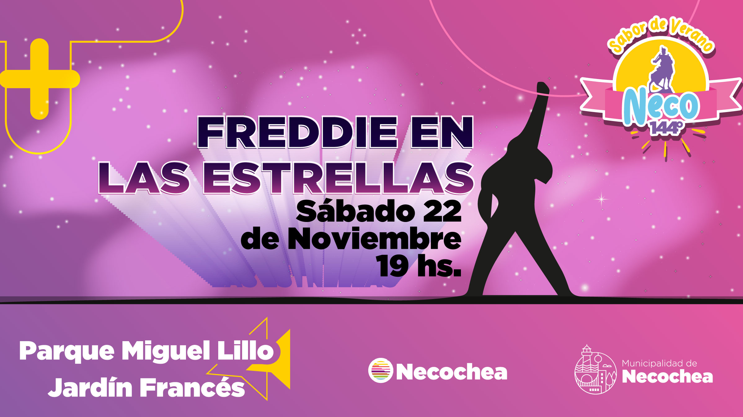 “Freddie y las estrellas”, un espectáculo único, musicalizado con temas del legendario grupo de rock Queen, y que traza un paralelo entre la vida del líder musical, Freddie Mercury y el nacimiento, desarrollo y muerte de las estrellas.
